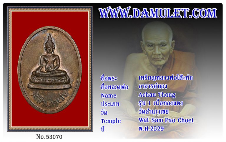 เหรียญหลวงพ่อโต๊ะหัก อาจารย์ทอง วัดสำเภาเชย พ.ศ.2529