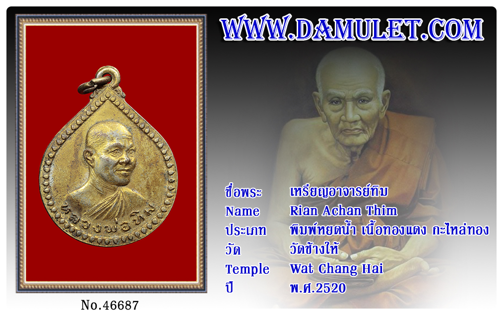 ชื่อพระ : เหรียญอาจารย์ทิม