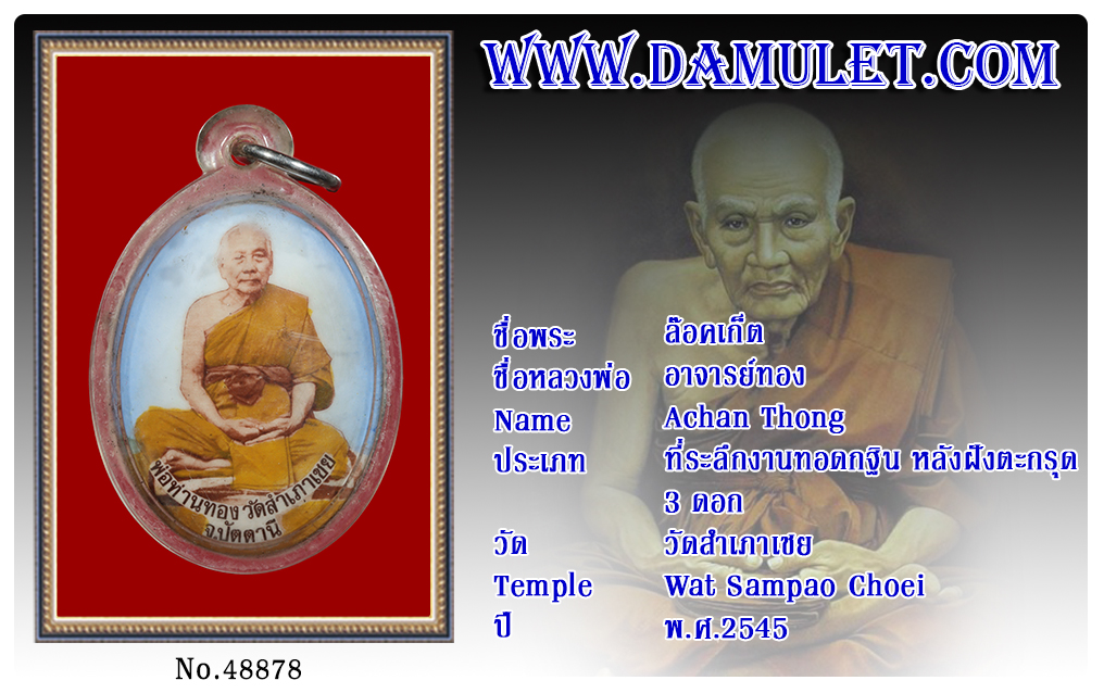 ชื่อพระ : ล๊อคเก็ต อาจารย์ทอง