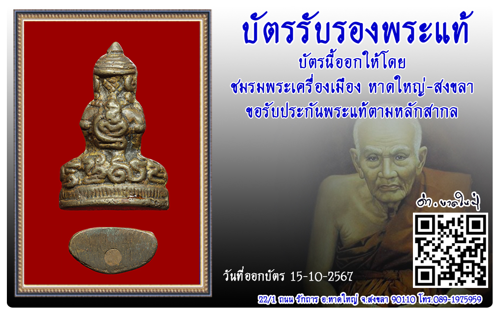 พระปิดตา หลวงพ่อสังข์ วัดนากันตม 2567 บัตรรับรองพระแท้ 26 ต.ค. 2024 116 share tweet share ชื่อพระ : พระปิดตา หลวงพ่อสังข์ประเภท : เนื้อทองผสมวัด : วัดนากันตมรหัส : No.48879วันที่ออกบัตร : 15-10-2567