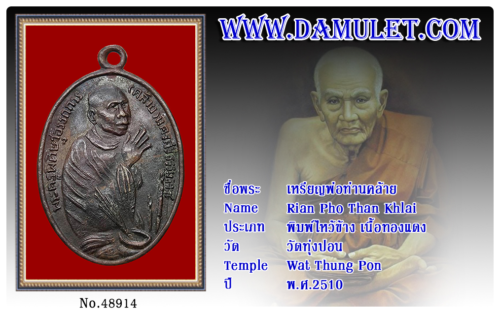 เหรียญพ่อท่านคล้าย วัดทุ่งปอน พ.ศ.2510