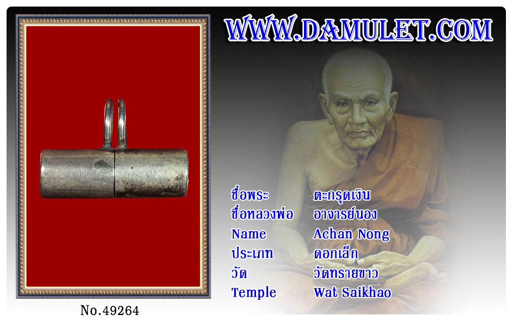 ตะกรุดเงิน อาจารย์นอง วัดทรายขาว 2567 บัตรรับรองพระแท้ 10 ม.ค. 2025 111 share tweet share ชื่อพระ : ตะกรุดเงินชื่อหลวงพ่อ : อาจารย์นองประเภท : ดอกเล็กวัด : วัดทรายขาวรหัส : No.49264วันที่ออกบัตร : 04-12-2567
