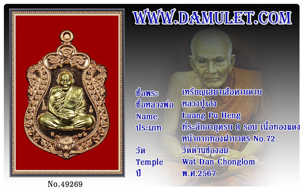 ประเภท : ที่ระลึกอายุครบ 8 รอบ เนื้อทองแดง หน้ากากทองฝาบาตร No.72