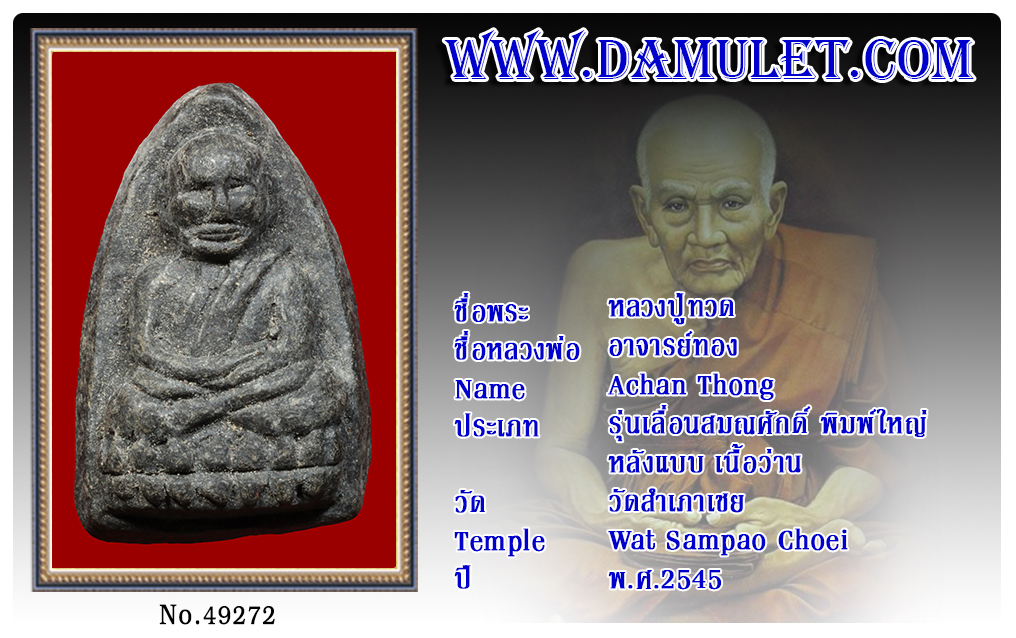 ประเภท : รุ่นเลื่อนสมณศักดิ์ พิมพ์ใหญ่ หลังแบบ เนื้อว่าน