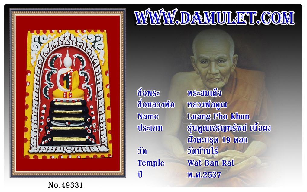 ประเภท : รุ่นคูณเจริญทรัพย์ เนื้อผง ฝังตะกรุด 19 ดอก