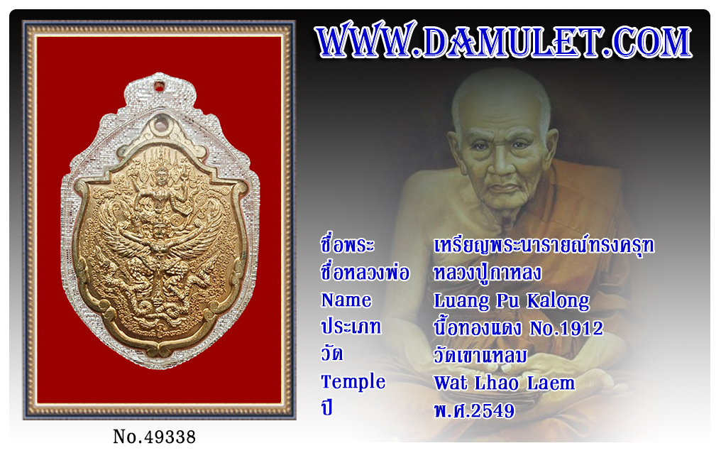 เหรียญพระนารายณ์ทรงครุฑ หลวงปู่กาหลง วัดเขาแหลม พ.ศ.2549