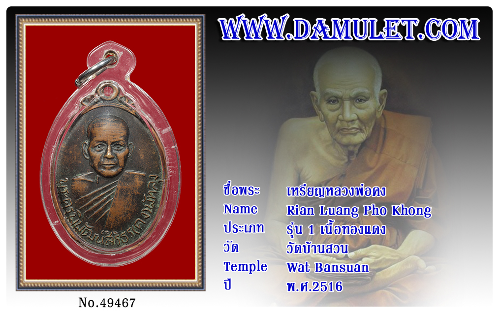 ชื่อพระ : เหรียญหลวงพ่อคง