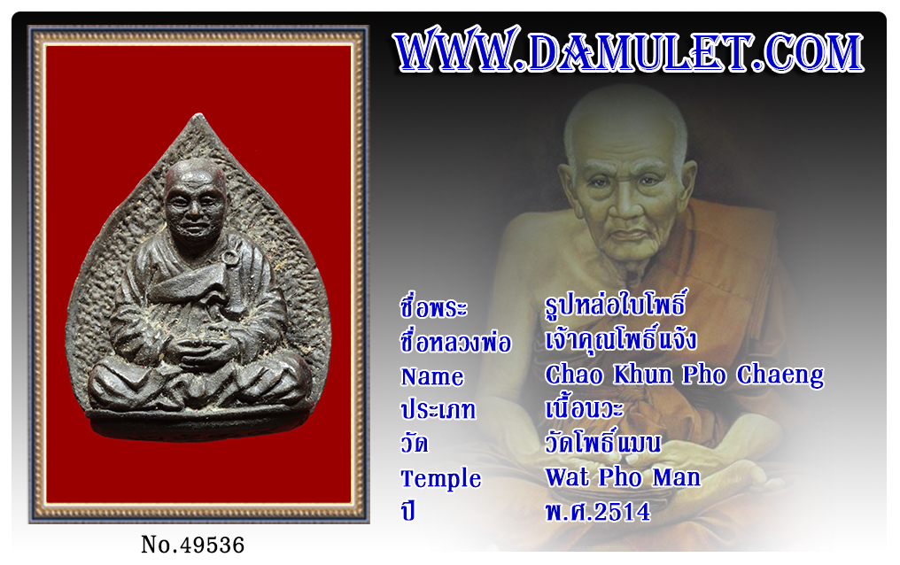 ชื่อพระ : รูปหล่อใบโพธิ์