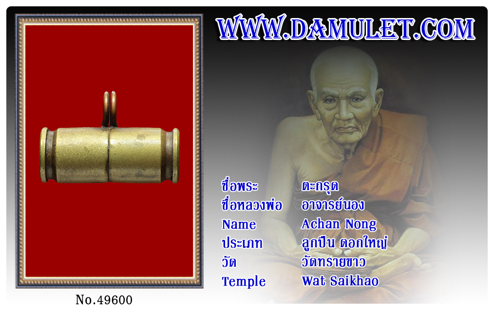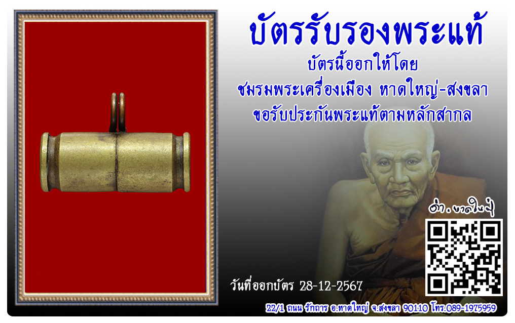ตะกรุดลูกปืน อาจารย์นอง วัดทรายขาว 2567 บัตรรับรองพระแท้ 15 ม.ค. 2025 195 share tweet share ชื่อพระ : ตะกรุดลูกปืนชื่อหลวงพ่อ : อาจารย์นองประเภท : ดอกใหญ่วัด : วัดทรายขาวรหัส : No.49600วันที่ออกบัตร : 29-12-2567