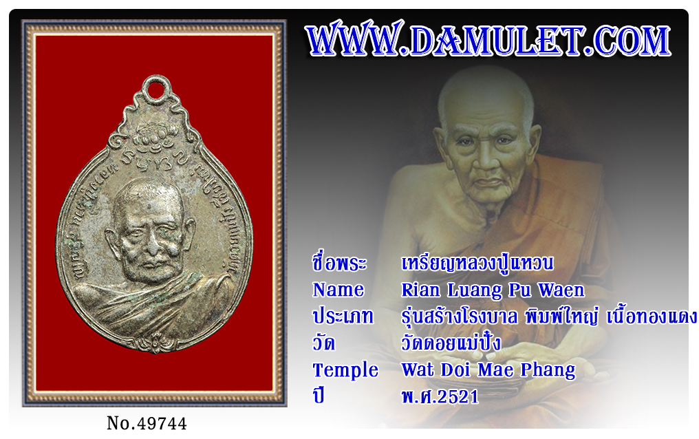 เหรียญหลวงปู่แหวน วัดดอยแม่ปั๋ง พ.ศ.2521