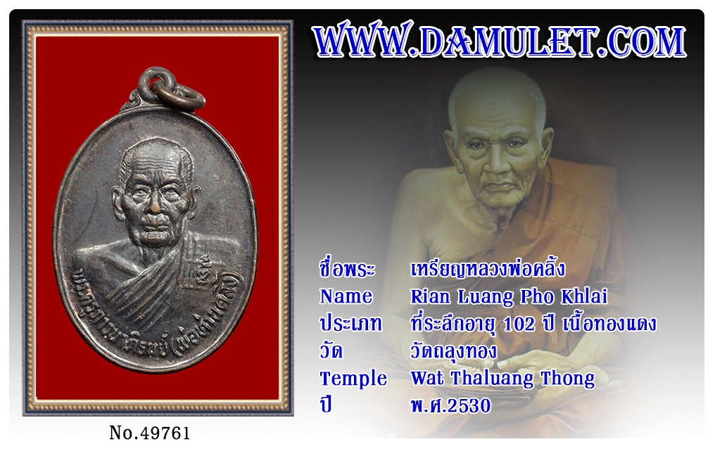 ชื่อพระ : เหรียญหลวงพ่อคลิ้ง