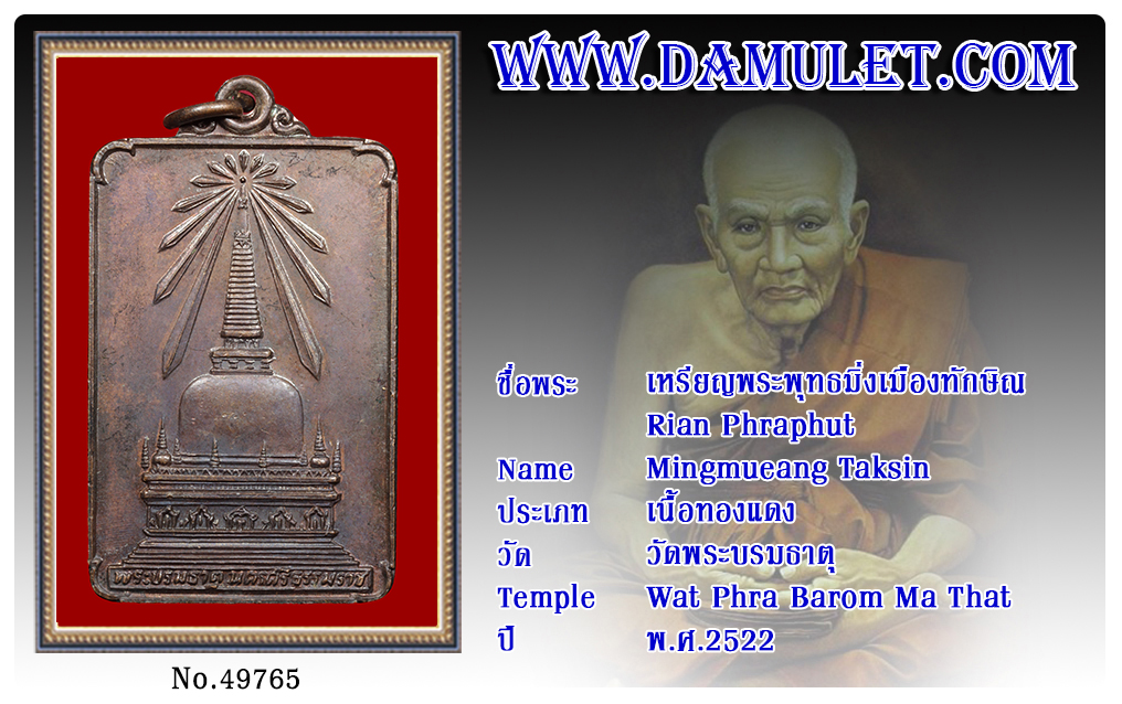 ชื่อพระ : เหรียญพระพุทธมิ่งเมืองทักษิณ