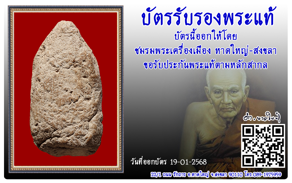 พระขุนแผน พระขุนแผน เนื้อว่าน วัดหลักห้า พ.ศ.2503 2568 บัตรรับรองพระแท้ 29 ม.ค. 2025 117 share tweet share ชื่อพระ : พระขุนแผนประเภท : เนื้อว่านวัด-ปี : วัดหลักห้า พ.ศ.2505รหัส : No.49806วันที่ออกบัตร : 19-01-2568