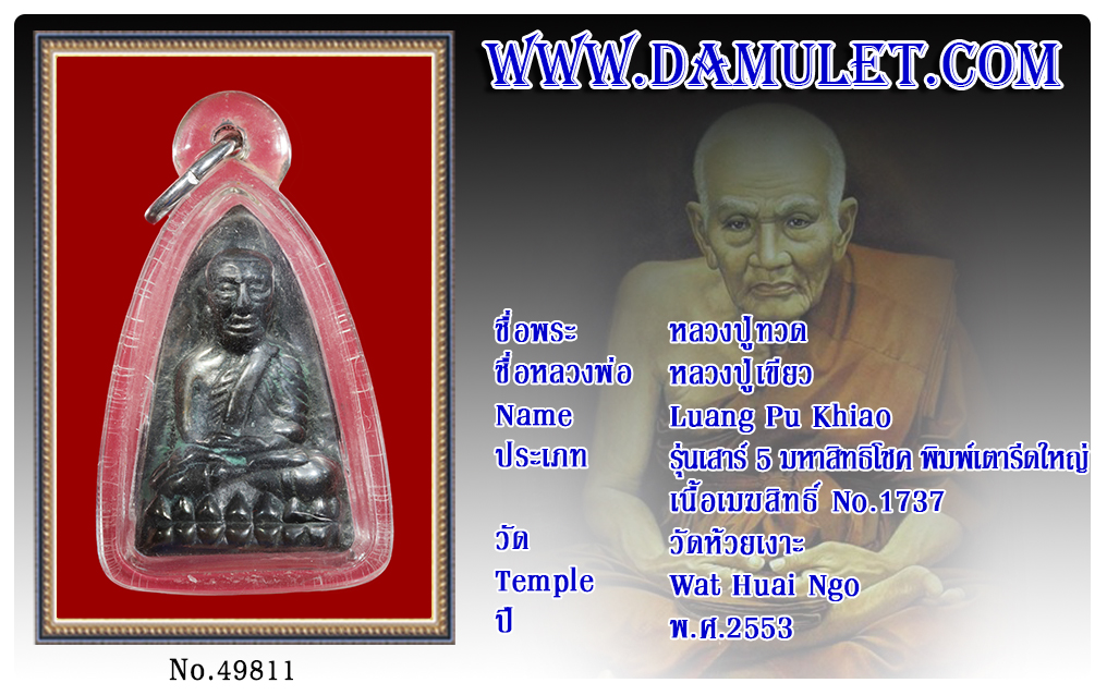 ประเภท : รุ่นเสาร์ 5 มหาสิทธิโชค พิมพ์เตารีดใหญ่ เนื้อเมฆสิทธิ์ No.1737