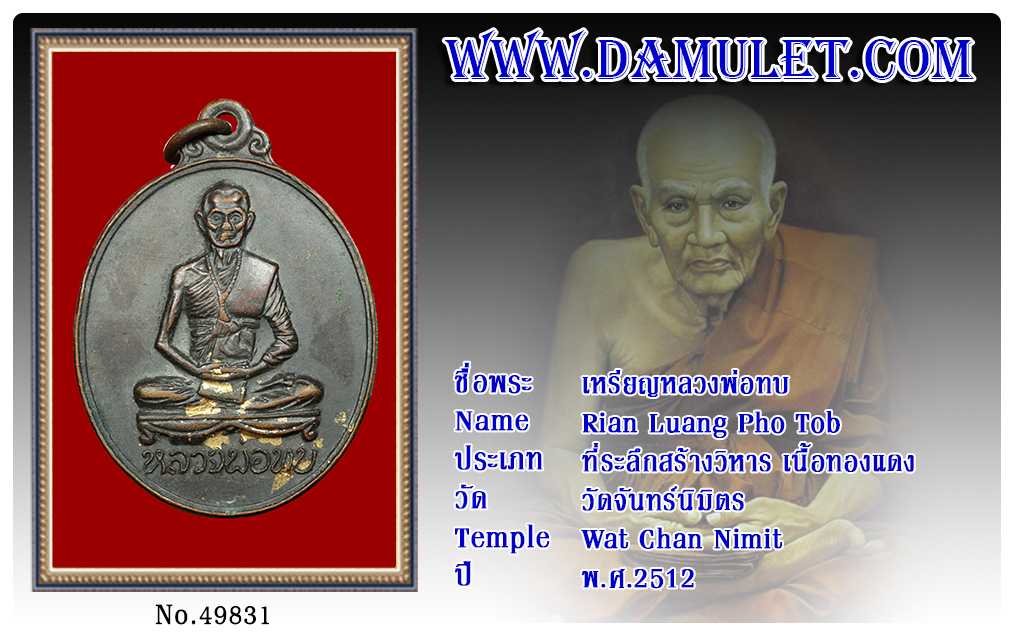 ชื่อพระ : เหรียญหลวงพ่อทบ