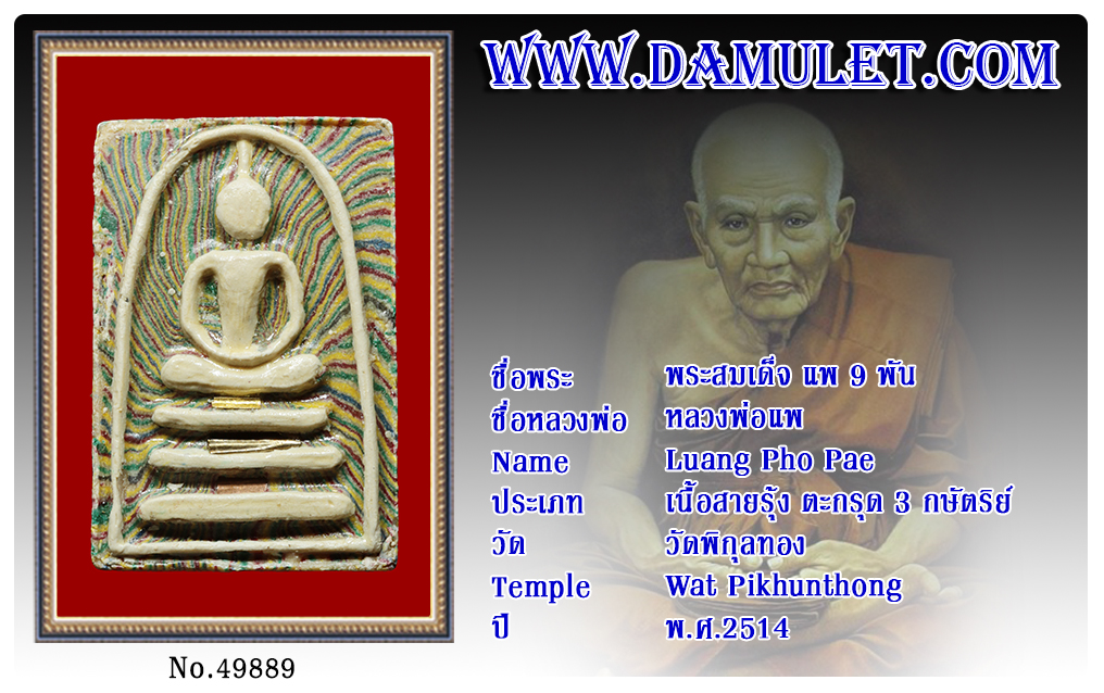 ชื่อพระ : พระสมเด็จ แพ 9 พัน