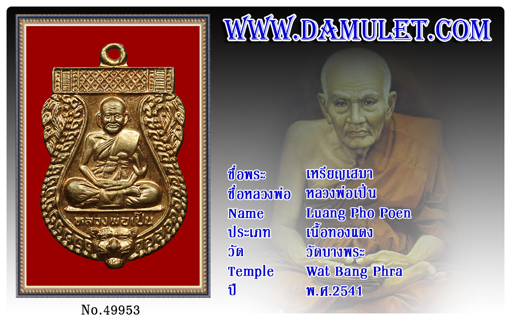 เหรียญเสมา หลวงพ่อเปิ่น วัดบางพระ พ.ศ.2541