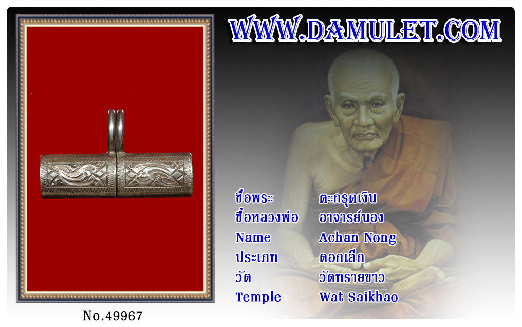 ตะกรุดเงิน อาจารย์นอง วัดทรายขาว 2568 บัตรรับรองพระแท้ 25 ก.พ. 2025 139 share tweet share ชื่อพระ : ตะกรุดเงินชื่อหลวงพ่อ : อาจารย์นองประเภท : ดอกเล็กวัด : วัดทรายขาวรหัส : No.49967วันที่ออกบัตร : 06-02-2568