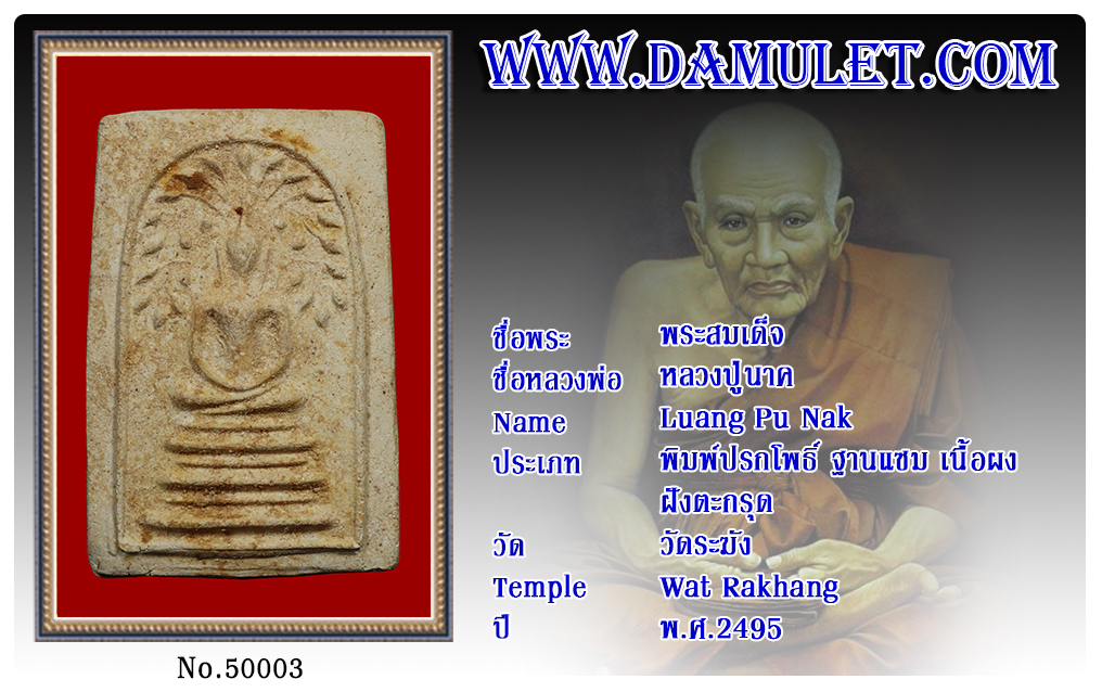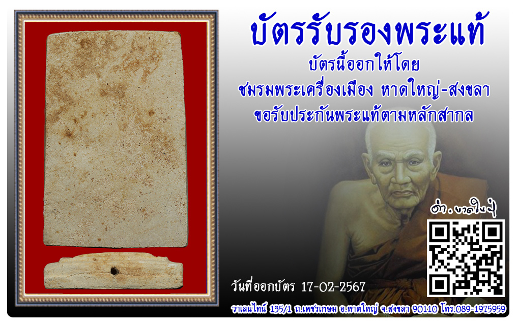 ประเภท : พิมพ์ปรกโพธิ์ ฐานแซม เนื้อผง ฝังตะกรุด