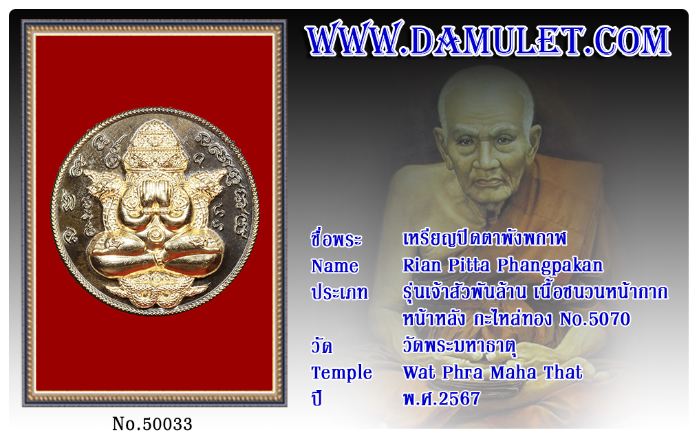 ประเภท : รุ่นเจ้าสัวพันล้าน เนื้อชนวนหน้ากาก หน้าหลัง กะไหล่ทอง No.5070