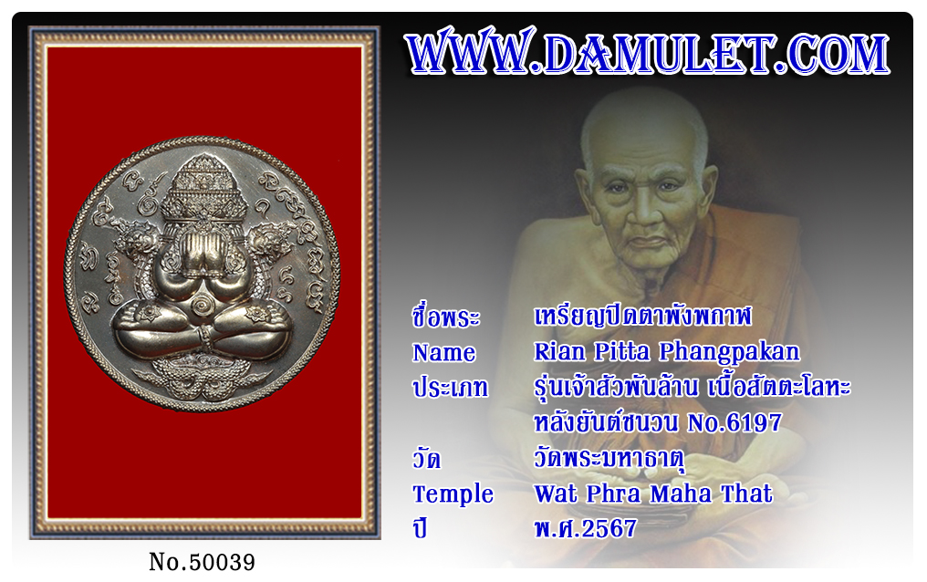 ประเภท : รุ่นเจ้าสัวพันล้าน เนื้อสัตตะโลหะ หลังยันต์ชนวน No.6197