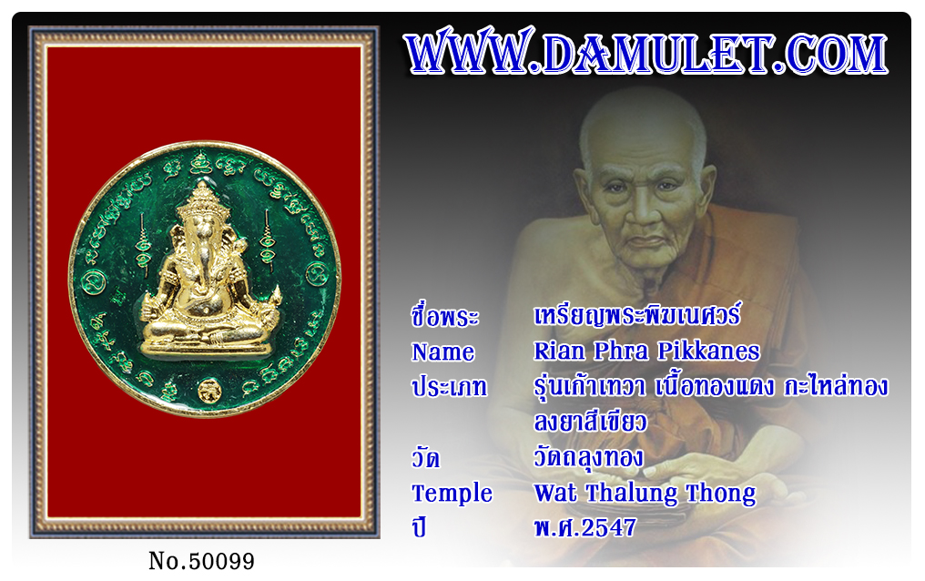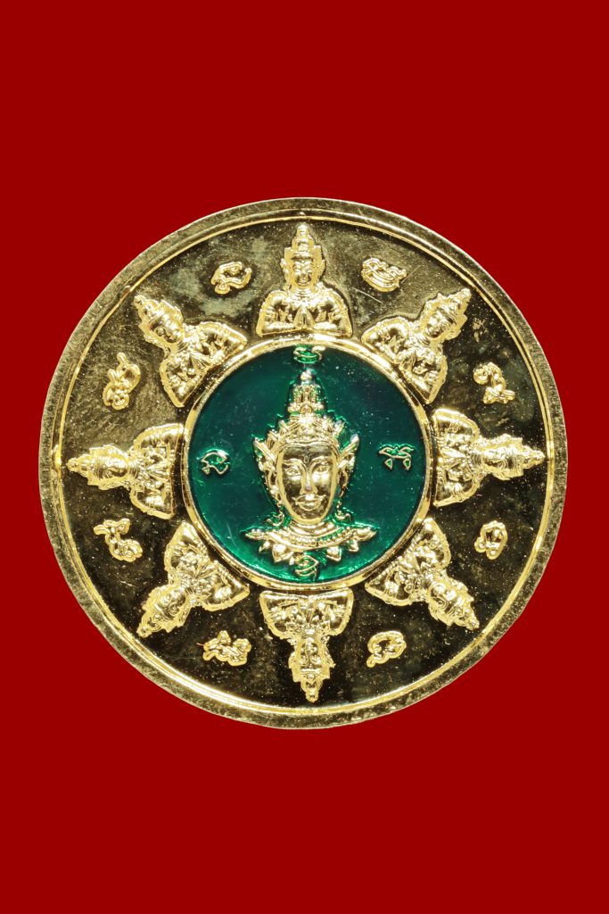 ประเภท : รุ่นเก้าเทวา เนื้อทองแดง กะไหล่ทอง ลงยาสีเขียว