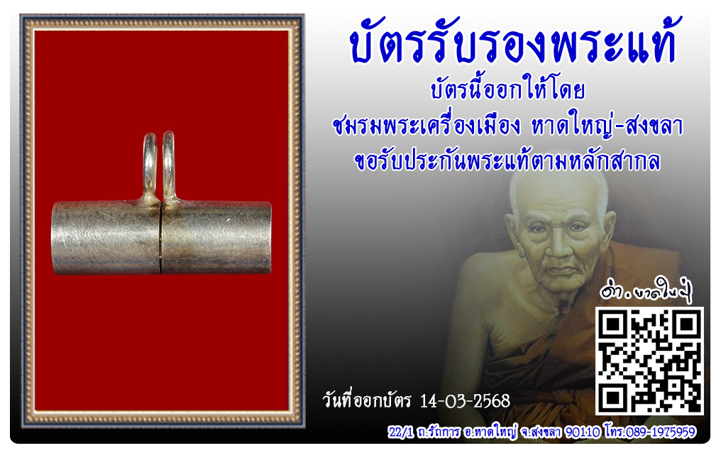 ตะกรุดเงิน อาจารย์นอง วัดทรายขาว 2568 บัตรรับรองพระแท้ 21 เม.ย. 2025 91 share tweet share ชื่อพระ : ตะกรุดเงินชื่อหลวงพ่อ : อาจารย์นองประเภท : ดอกเล็กวัด : วัดทรายขาวรหัส : No.50314วันที่ออกบัตร : 14-03-2568