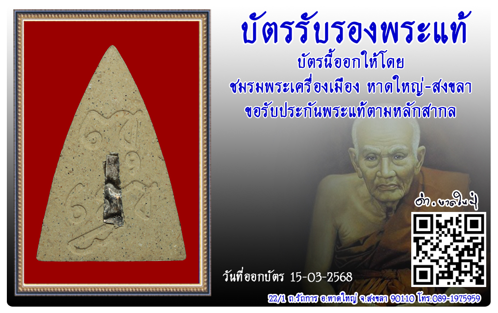 พระพุทโธน้อย วัดสารนาภ พ.ศ.2559 2568 บัตรรับรองพระแท้ 21 เม.ย. 2025 85 share tweet share ชื่อพระ : พระพุทโธน้อยประเภท : พิมพ์จัมโบ้ (ย้อนยุค)วัด-ปี : วัดสารนาภ พ.ศ.2559รหัส : No.50331วันที่ออกบัตร : 15-03-2568