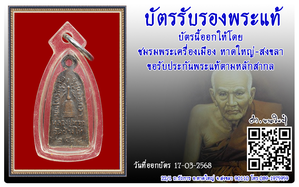 ประเภท : รุ่นทะเลซุง พิมพ์เล็ก เนื้อทองแดง แจกปีนัง