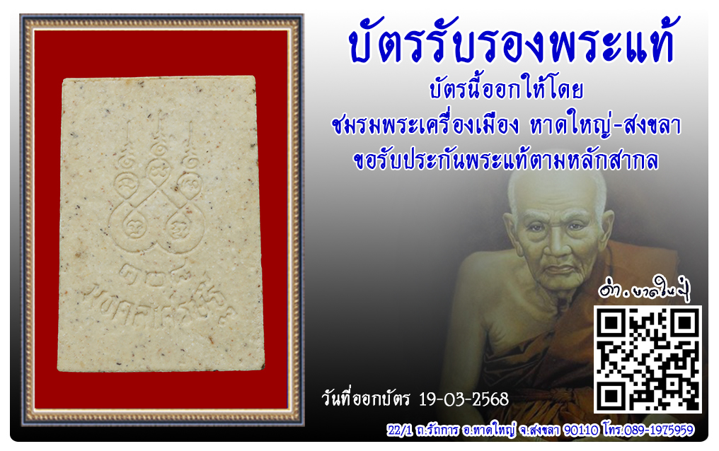 สมเด็จโต วัดระฆัง พ.ศ.2537 2568 บัตรรับรองพระแท้ 22 เม.ย. 2025 107 share tweet share ชื่อพระ : สมเด็จโตประเภท : รุ่นเบญจภาคี 108 เนื้อผงวัด-ปี : วัดระฆัง พ.ศ.2537รหัส : No.50380วันที่ออกบัตร : 19-03-2568