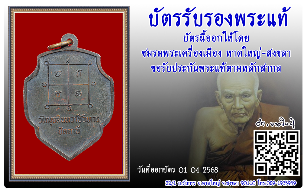 เหรียญหลวงพ่อดำ วัดตุยง พ.ศ.2516 2568 บัตรรับรองพระแท้ 13 พ.ค. 2025 111 share tweet share ชื่อพระ : เหรียญหลวงพ่อดำประเภท : รุ่น 1 เนื้อทองแดงวัด-ปี : วัดตุยง พ.ศ.2516รหัส : No.50461วันที่ออกบัตร : 01-04-2568