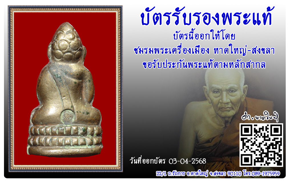 พระชัยวัฒน์ วัดช้าง พ.ศ.2545 2568 บัตรรับรองพระแท้ 14 พ.ค. 2025 148 share tweet share ชื่อพระ : พระชัยวัฒน์ประเภท : เนื้อนวะวัด-ปี : วัดช้าง พ.ศ.2545รหัส : No.50528วันที่ออกบัตร : 03-04-2568