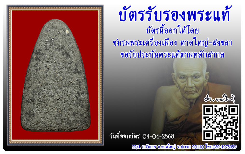 หลวงปู่ทวด วัดช้างให้ พ.ศ.2524 2568 บัตรรับรองพระแท้ 14 พ.ค. 2025 112 share tweet share ชื่อพระ : หลวงปู่ทวดประเภท : พิมพ์กลาง เนื้อว่านวัด-ปี : วัดช้างให้ พ.ศ.2524รหัส : No.50535วันที่ออกบัตร : 04-04-2568