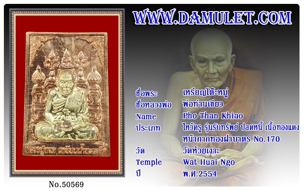 ประเภท : ไหว้ครู รุ่นรับทรัพย์ ปลดหนี้ เนื้อทองแดง หน้ากากทองฝาบาตร No.170