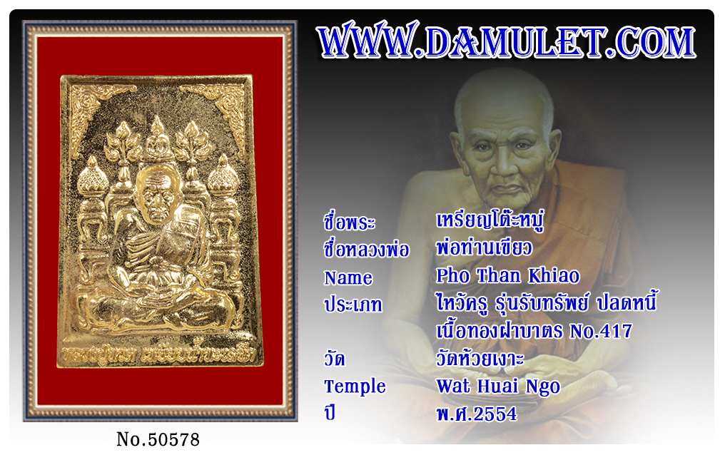 ประเภท : ไหว้ครู รุ่นรับทรัพย์ ปลดหนี้ เนื้อทองฝาบาตร No.417