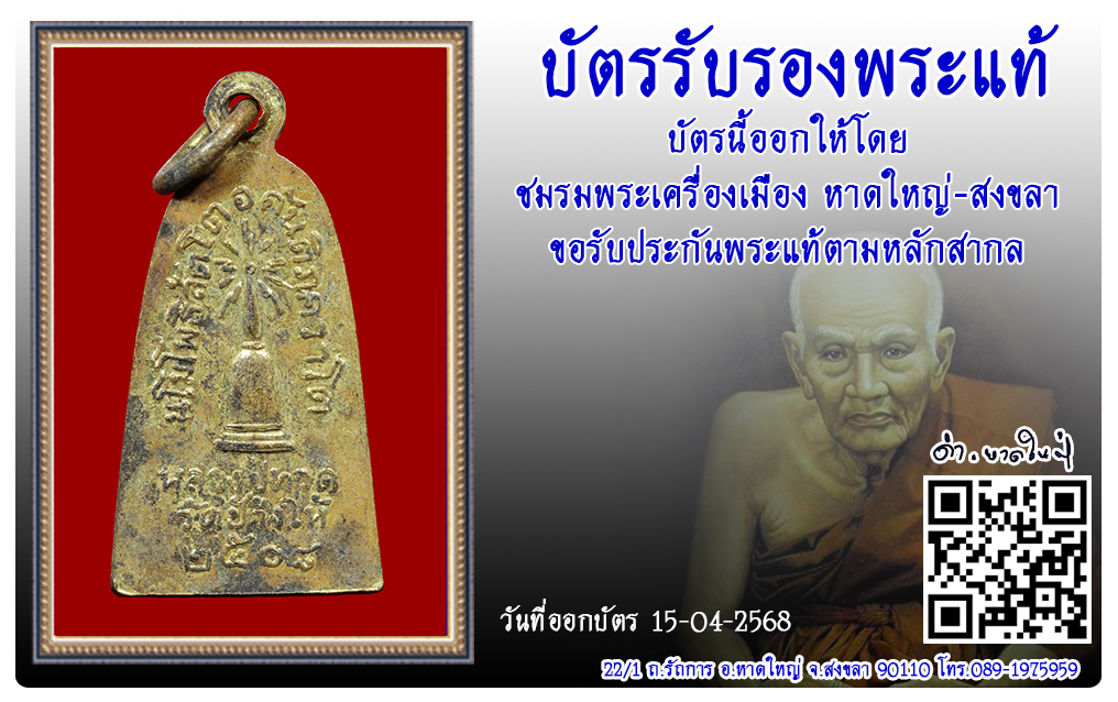 ประเภท : รุ่นทะเลซุง พิมพ์กลาง เนื้อทองฝาบาตร แจกปีนัง