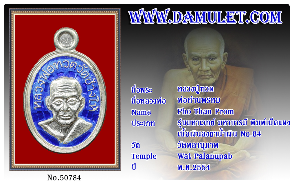 ประเภท : รุ่นมหาเวทย์ มหาบารมี พิมพ์เม็ดแตง เนื้อเงินลงยาน้ำเงิน No.84 พ่อท่านพรหม