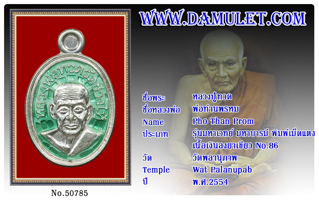 ประเภท : รุ่นมหาเวทย์ มหาบารมี พิมพ์เม็ดแตง เนื้อเงินลงยาเขียว No.86 พ่อท่านพรหม