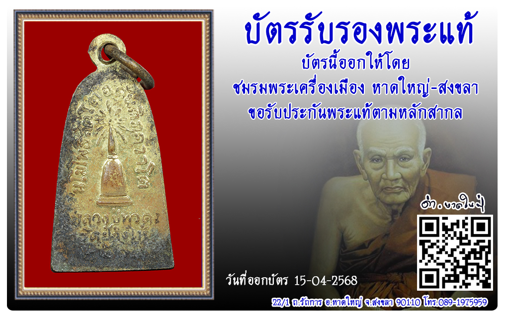 ประเภท : รุ่นทะเลซุง พิมพ์กลาง เนื้อทองฝาบาตร แจกปีนัง