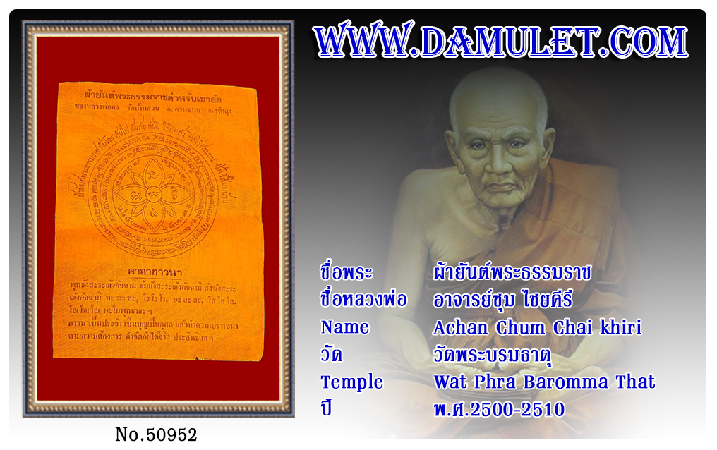 ผ้ายันต์พระธรรมราช อาจารย์ชุม ไชยคีรี วัดพระบรมธาตุ พ.ศ.2500-2510