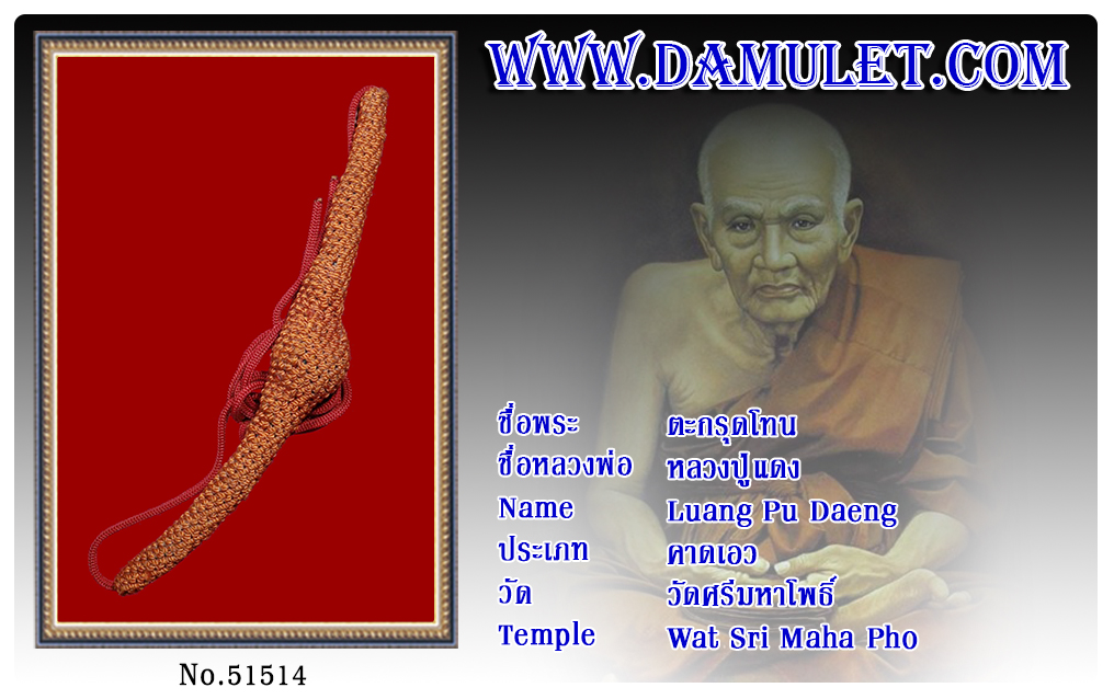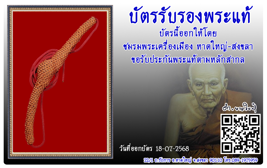 ตะกรุดโทน คาดเอว หลวงปู่แดง วัดศรีมหาโพธิ์ 2568 บัตรรับรองพระแท้ 15 ส.ค. 2025 149 share tweet share ชื่อพระ : ตะกรุดโทน คาดเอวชื่อหลวงพ่อ : หลวงปู่แดงวัด : วัดศรีมหาโพธิ์รหัส : No.51514วันที่ออกบัตร : 18-07-68