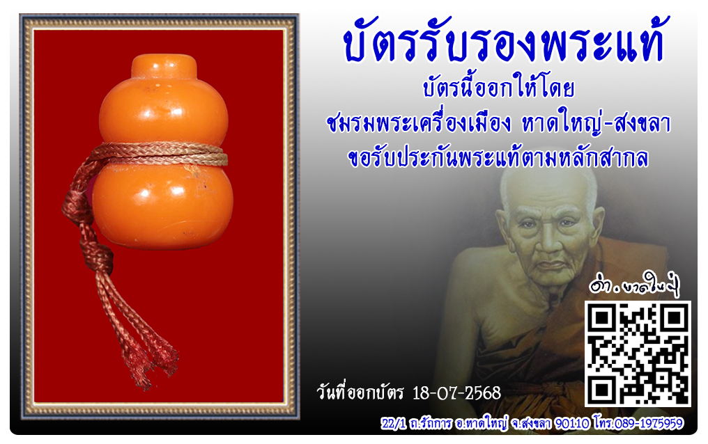 น้ำเต้าดูดทรัพย์ หลวงพ่อสด วัดปากน้ำ พ.ศ.2514 2568 บัตรรับรองพระแท้ 15 ส.ค. 2025 164 share tweet share ชื่อหลวงพ่อ : หลวงพ่อสดประเภท : รุ่น 2 เนื้อพลาสติกวัด-ปี : วัดปากน้ำ พ.ศ.2514รหัส : No.51519วันที่ออกบัตร : 18-07-68