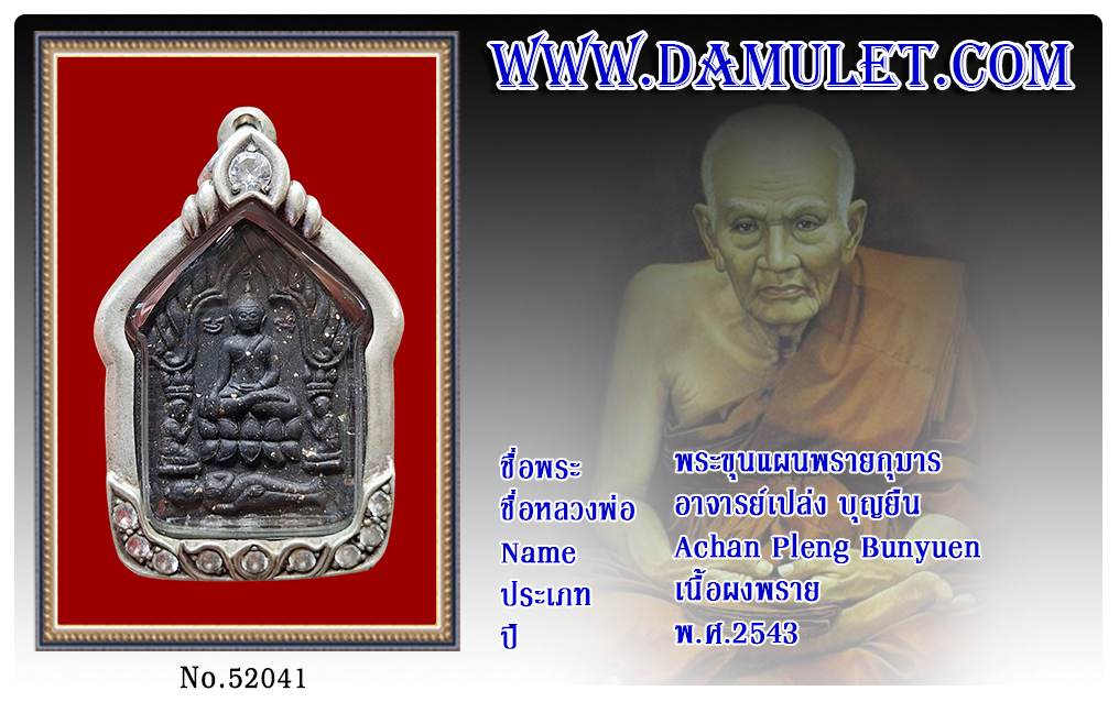 ขุนแผนพรายกุมาร อาจารย์เปล่ง บุญยืน พ.ศ.2543 2568 บัตรรับรองพระแท้ 05 ก.ย. 2025 175 share tweet share ชื่อพระ : ขุนแผนพรายกุมารชื่อหลวงพ่อ : อาจารย์เปล่ง บุญยืนปี : พ.ศ.2543รหัส : No.52041วันที่ออกบัตร : 03-09-2568