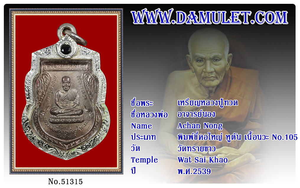 เหรียญหลวงปู่ทวด อาจารย์นอง วัดทรายขาว พ.ศ.2539