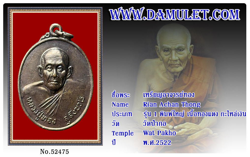 ชื่อพระ : เหรียญอาจารย์ทอง