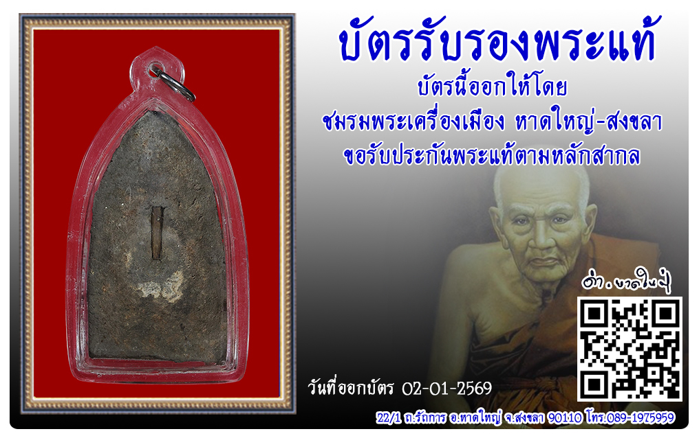 ประเภท : พิมพ์ห้อยขา (จัมโบ้) เนื้อว่าน ฝังตะกรุด 1 ดอก