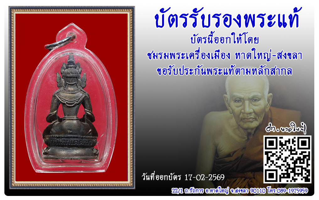 พระกริ่งอวโลกิเตศวร วัดหัวลำโพง พ.ศ.2537 2569 บัตรรับรองพระแท้ D-Amulet 14 เม.ย. 2026 9 share tweet share ชื่อพระ : พระกริ่งอวโลกิเตศวรประเภท : เนื้อนวะโลหะวัด-ปี : วัดหัวลำโพง พ.ศ.2537รหัส : No.53476วันที่ออกบัตร : 17-02-2569