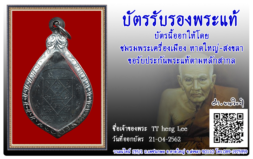 เหรียญพระครูพิมลศารโสภิต วัดนิเวศน์ พ.ศ.2512 2562 21 เม.ย. 2019 288 share tweet share ชื่อพระ : เหรียญพระครูพิมลศารโสภิต ประเภท : เนื้อทองแดงรมดำ วัด-ปี : วัดนิเวศน์ พ.ศ.2512 รหัส : No.62/04/21/23912 เจ้าของพระ : TT heng Lee