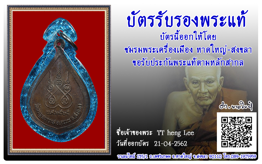เหรียญหลวงพ่อพุ่ม วัดกาญจนาวาส พ.ศ.2525 2562 21 เม.ย. 2019 388 share tweet share ชื่อพระ : เหรียญหลวงพ่อพุ่ม ประเภท : เนื้อทองแดง วัด-ปี : วัดกาญจนาวาส พ.ศ.2525 รหัส : No.62/04/21/23921 เจ้าของพระ : TT heng Lee