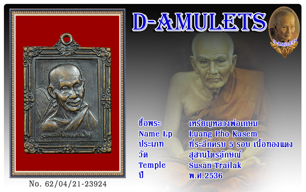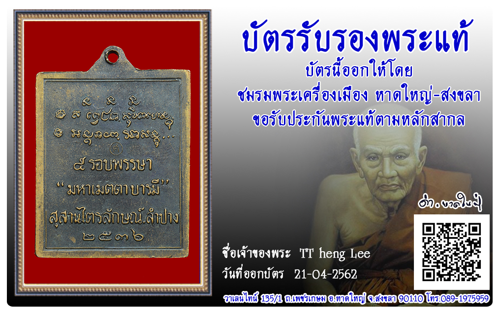 เหรียญหลวงพ่อเกษม สุสานไตรลักษร์ พ.ศ.2536 2562 21 เม.ย. 2019 252 share tweet share ชื่อพระ : เหรียญหลวงพ่อเกษม ประเภท : ที่ระลึกครบ 5 รอบ เนื้อทองแดง วัด-ปี : สุสานไตรลักษร์ พ.ศ.2536 รหัส : No.62/04/21/23924 เจ้าของพระ : TT heng Lee